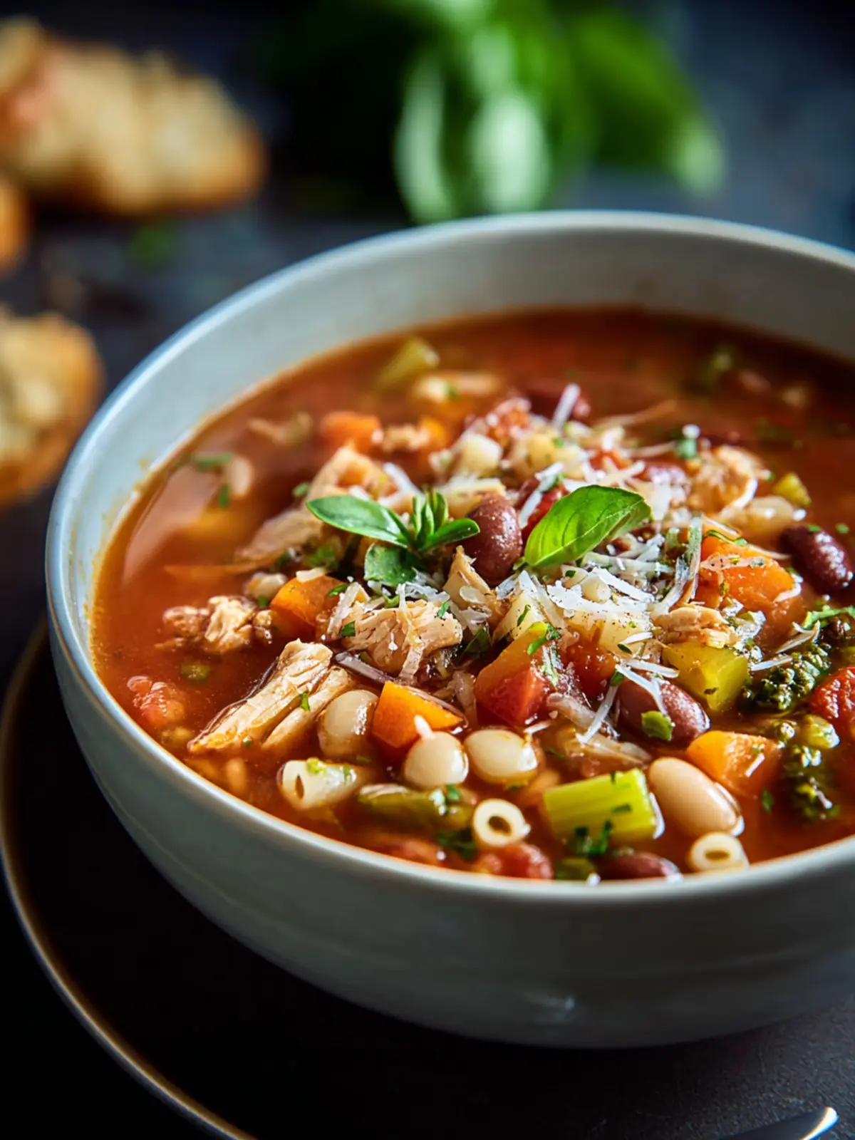 This revitalizing soup is a beautiful fusion of flavors, blending hearty chicken with vibrant vegetables, and, of course, the staple pasta and beans that make minestrone unique. It’s the perfect dish for those chilly evenings or when you’re feeling under the weather, providing a nourishing embrace that’s as satisfying as it is delicious.