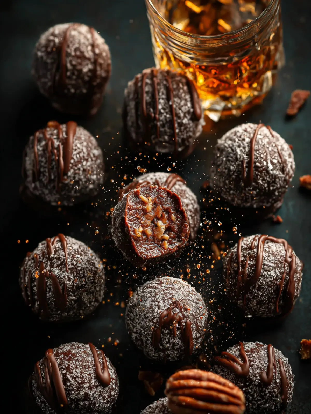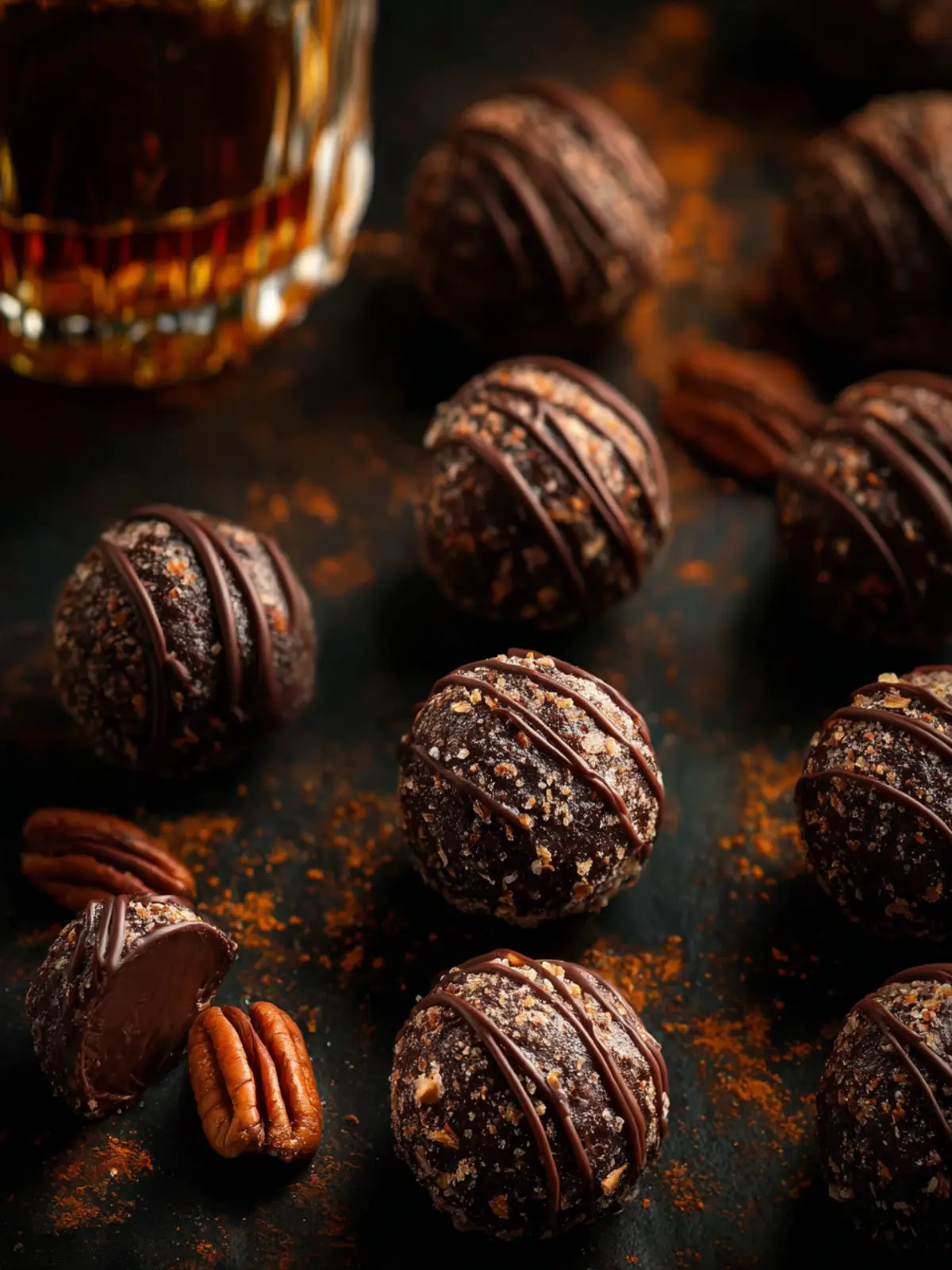 Delicious chocolate pecan bourbon balls, perfect for any occasion.
