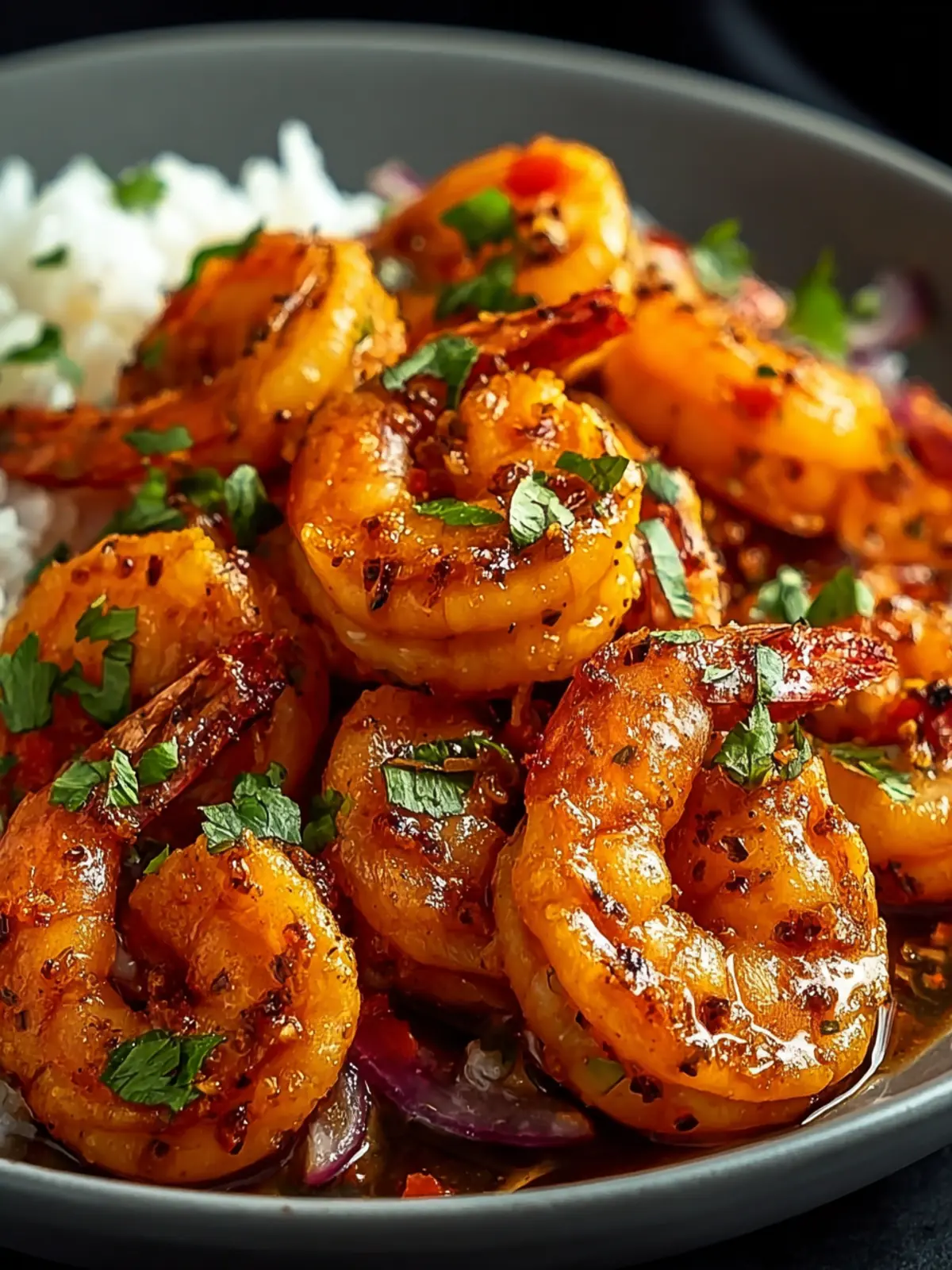 • Rice or Quinoa: Serve the shrimp over a bed of fluffy white or brown rice, or for a healthier option, opt for quinoa. This absorbs the sauce beautifully and balances the spice.