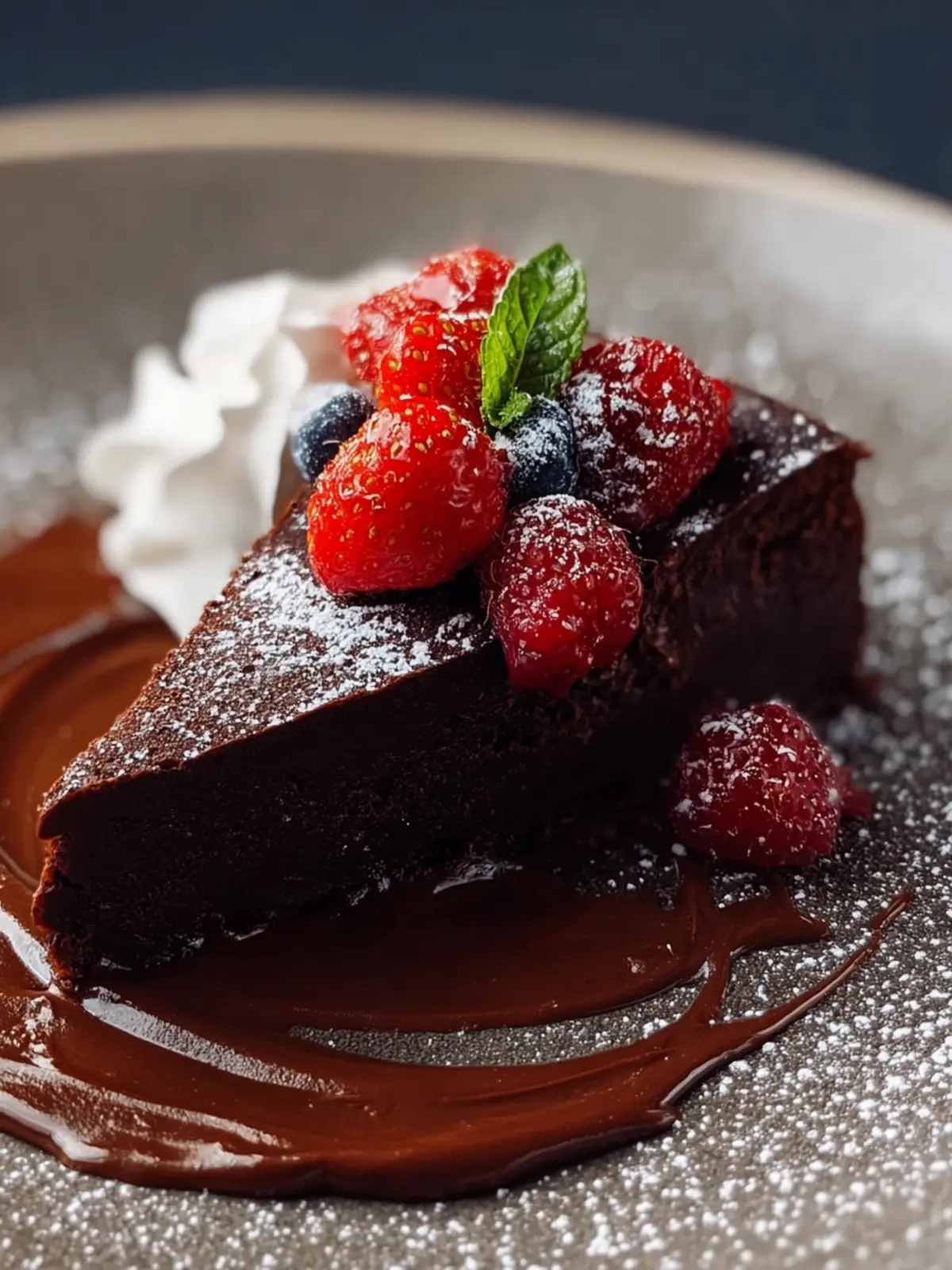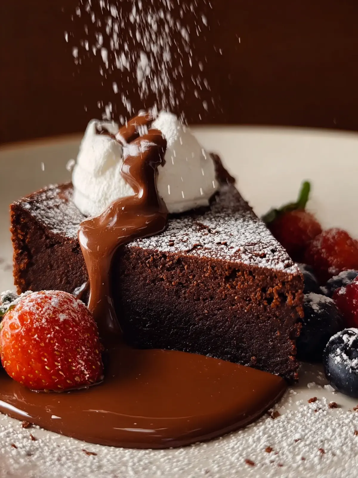 For the ultimate indulgence, drizzle some warm chocolate sauce over your flourless chocolate cake. It not only enhances the chocolate flavor but also adds an elegant presentation that will impress your guests.