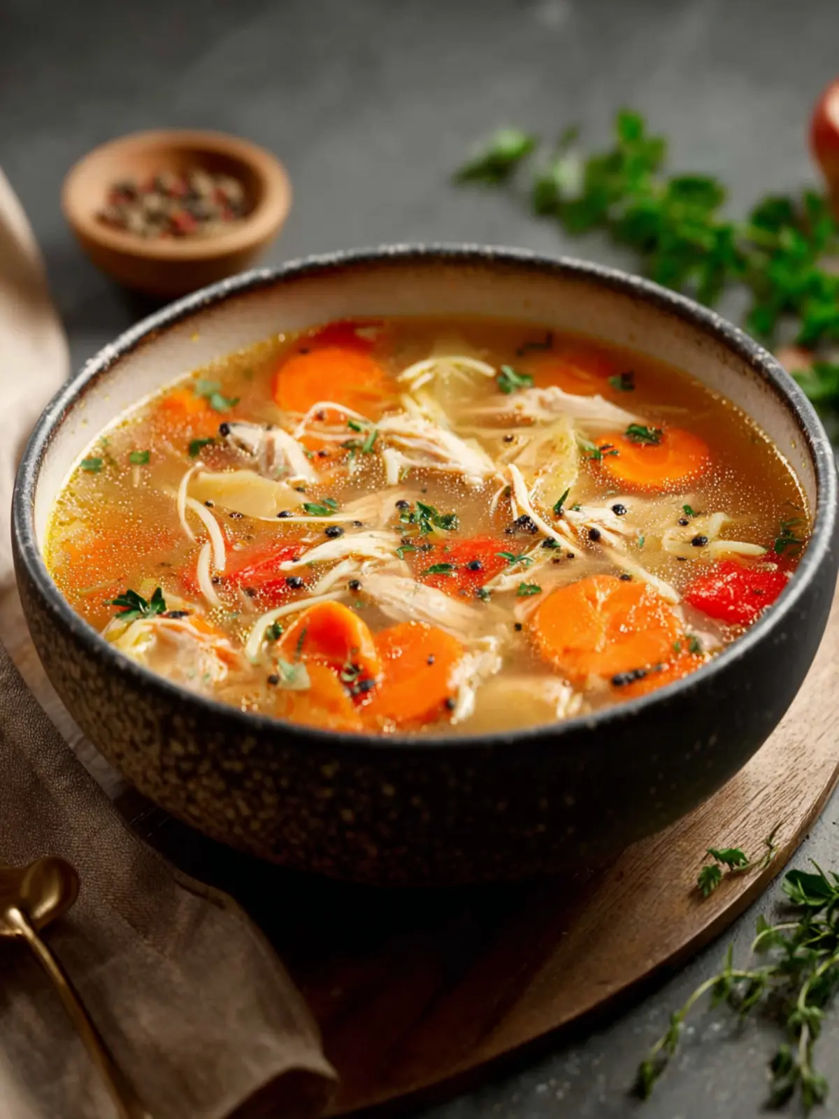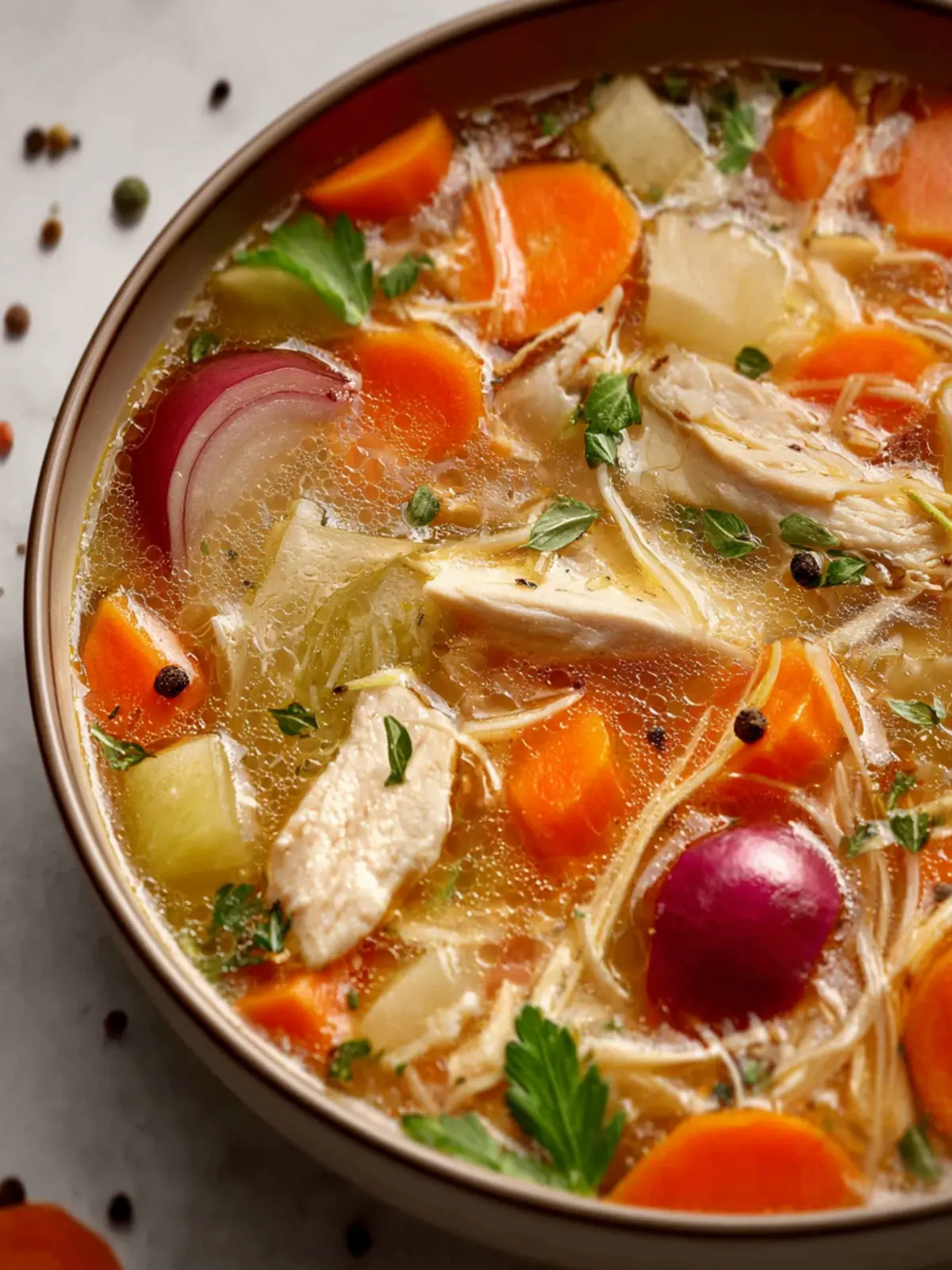 A hearty and comforting chicken soup made from scratch using fresh ingredients.