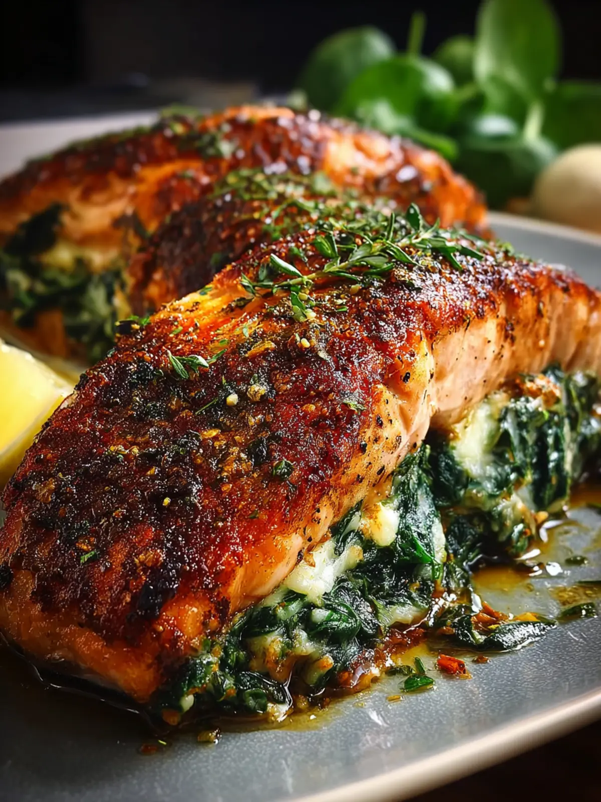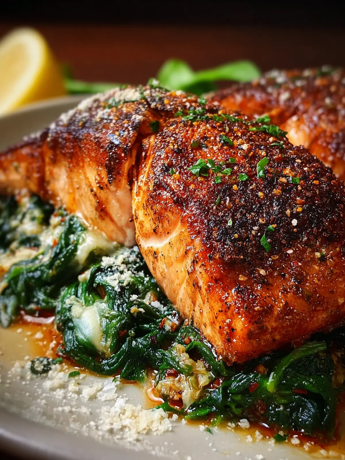 Healthy Blackened Salmon: Irresistibly Stuffed with Spinach & Parmesan
