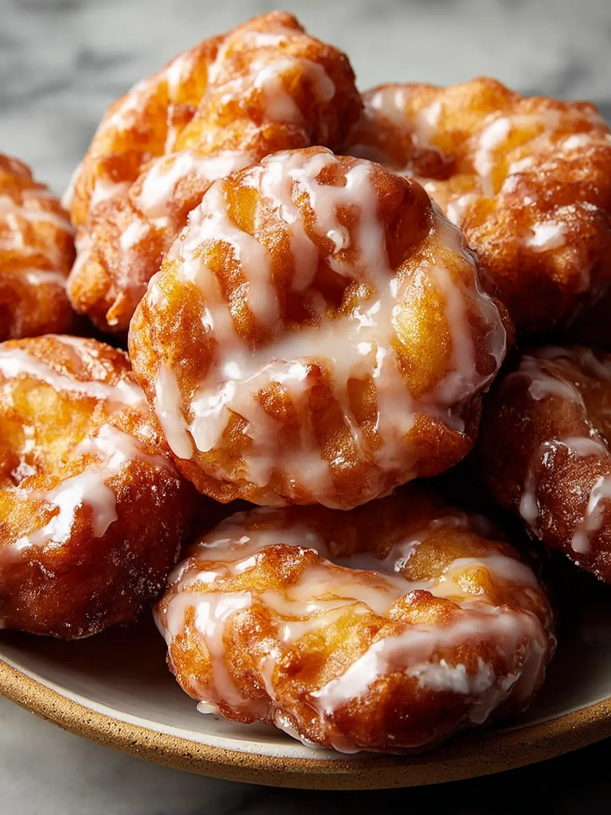 - Drizzle glaze over cooled fritters and allow to set before serving.
