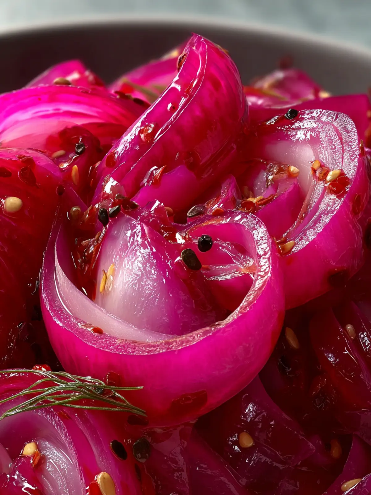 These quick pickled red onions are perfect for adding a tangy crunch to salads, sandwiches, and tacos.