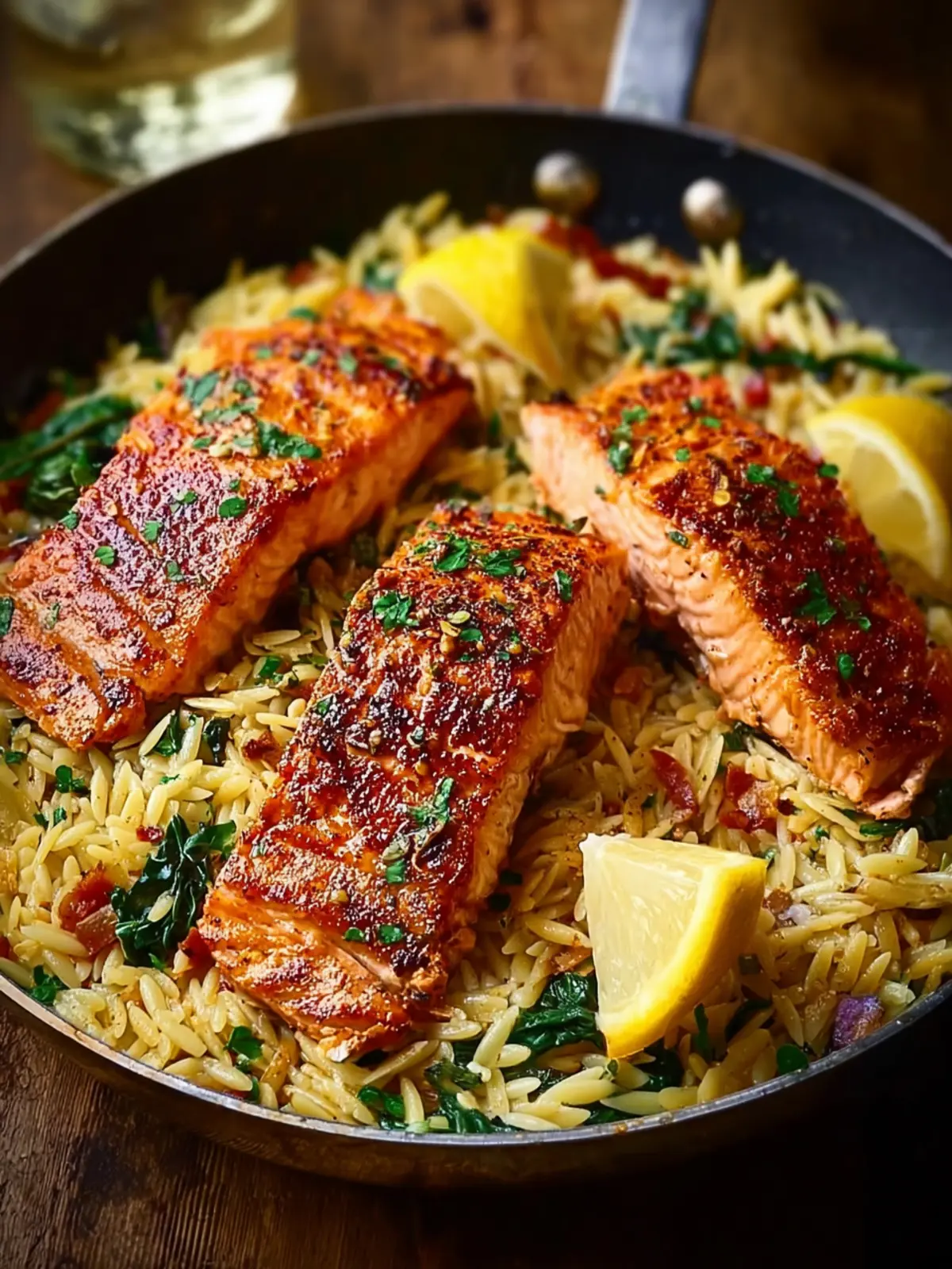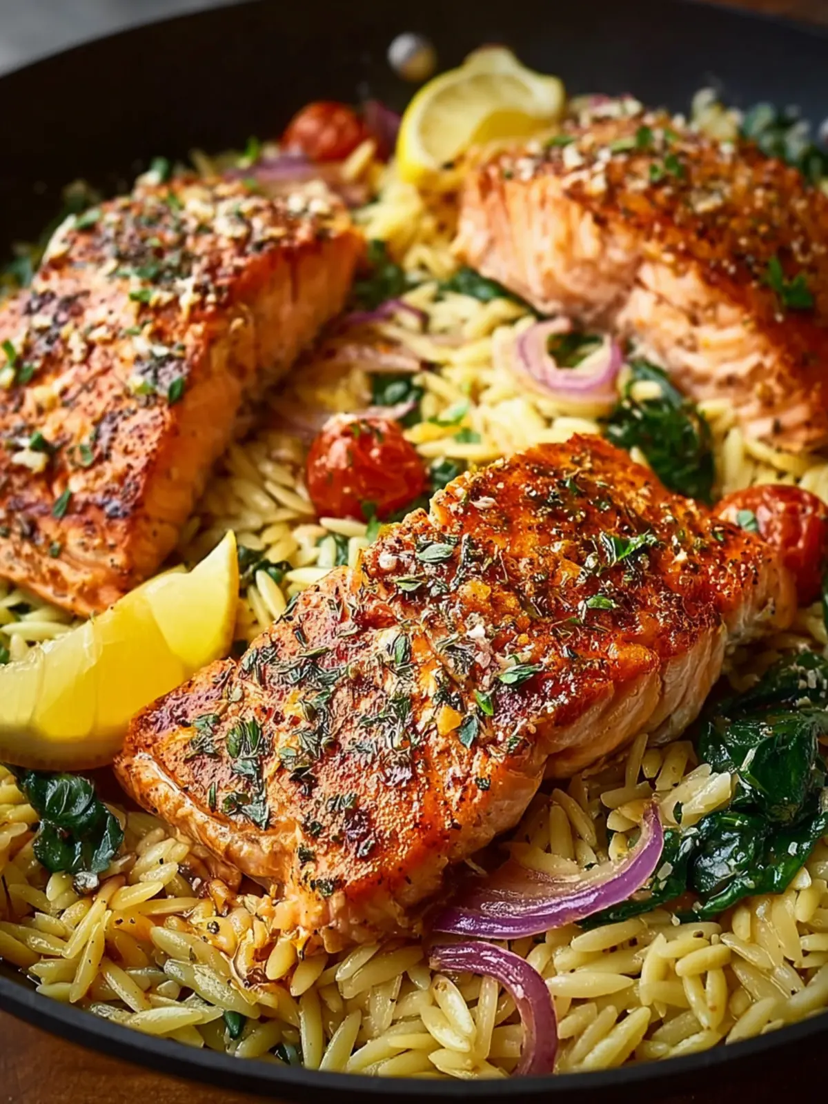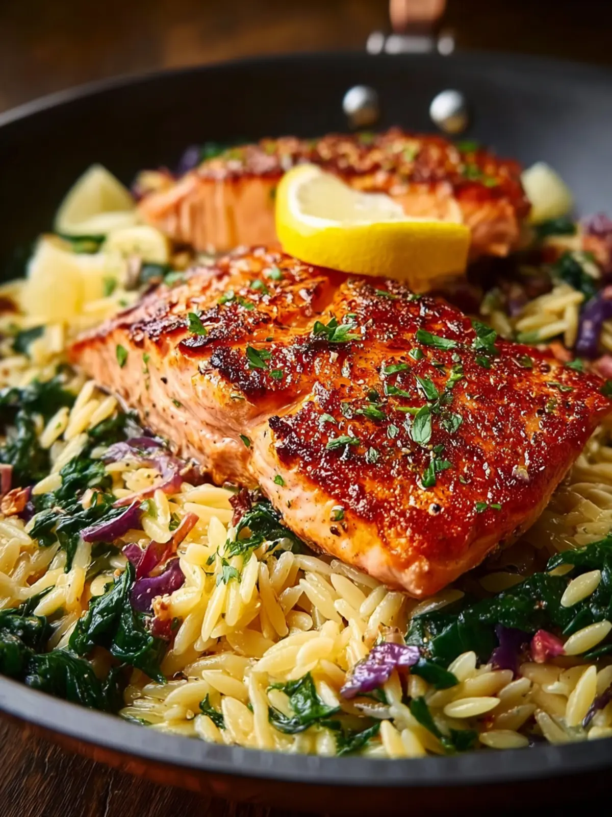 What makes this dish truly special is its effortless preparation. Cooking everything in just one skillet means less time fussing over multiple pots and pans. Simply sear the salmon, toss in some lemon-infused orzo, and watch as flavors meld seamlessly. This method not only speeds up dinner but also brings out the vibrant taste of the ingredients.