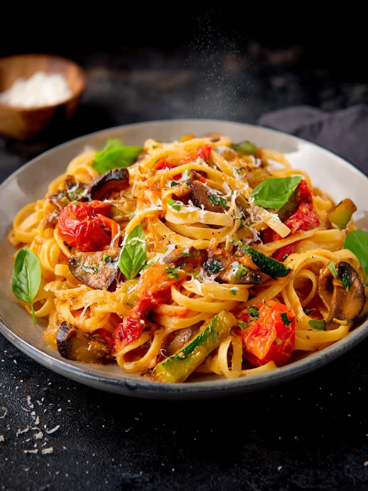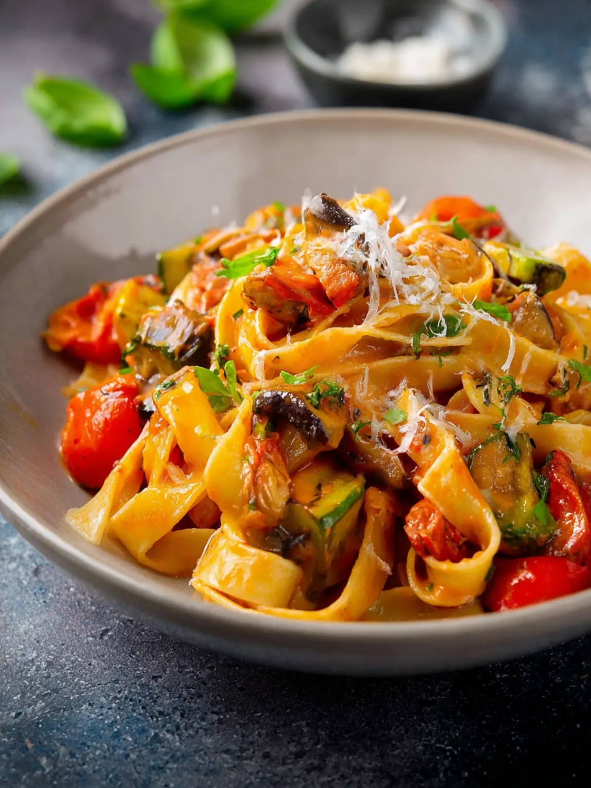 A delicious roasted vegetable tagliatelle dish that brings together fresh ingredients and flavors.