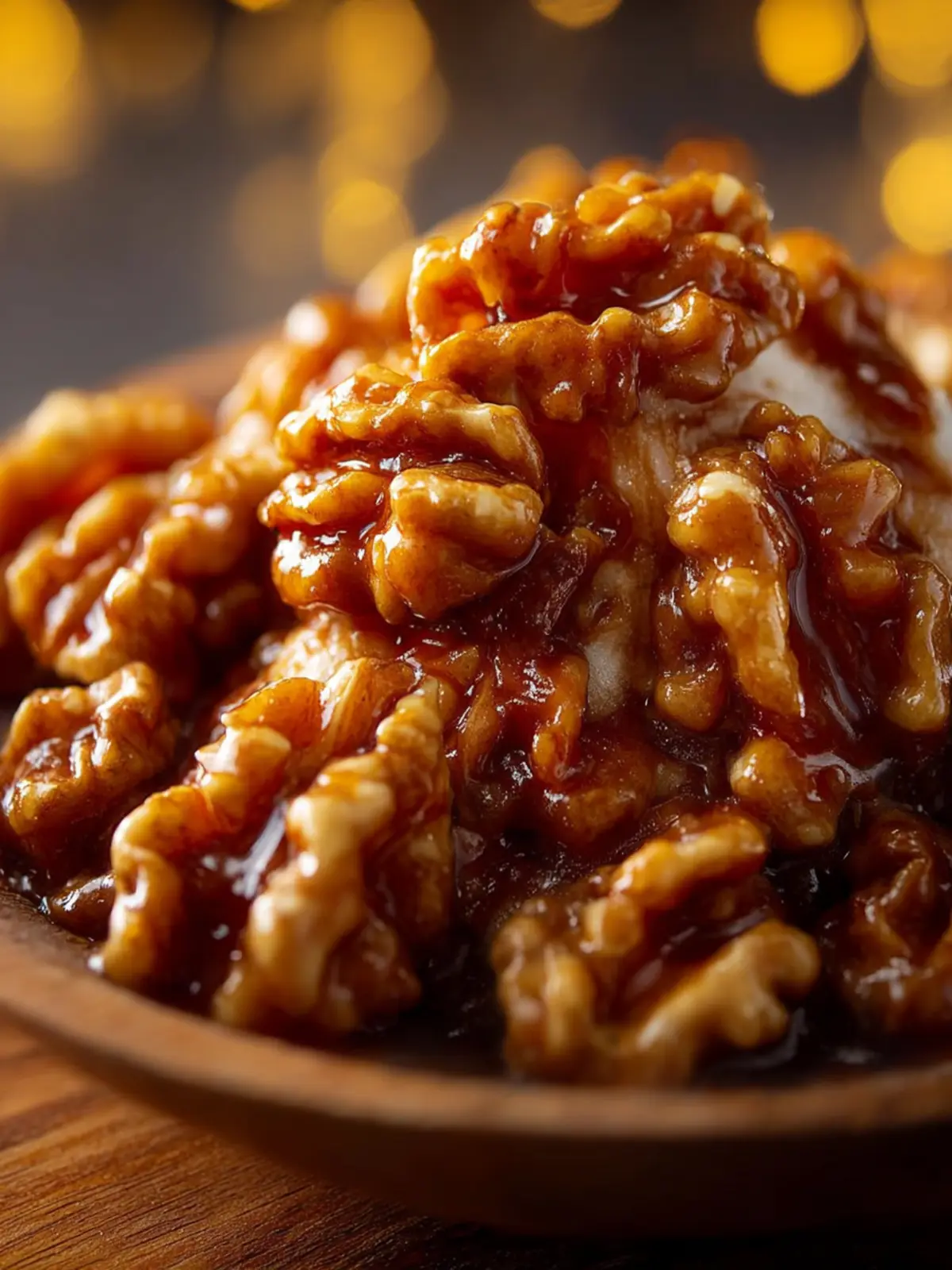 Delicious toffee-coated walnut halves that are perfect for snacking.